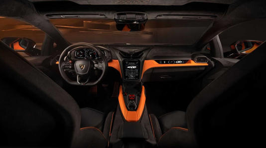 En cuanto al interior, la temática es la misma, ya que la Y también es un rasgo distintivo. Se presta mayor atención a las necesidades del conductor en comparación con los modelos anteriores de Lamborghini. El automóvil cuenta con tres pantallas: una pantalla táctil vertical de 8,4 pulgadas, una para la instrumentación digital de 12,3 pulgadas y un monitor de 9,1 pulgadas en el lado derecho del tablero.